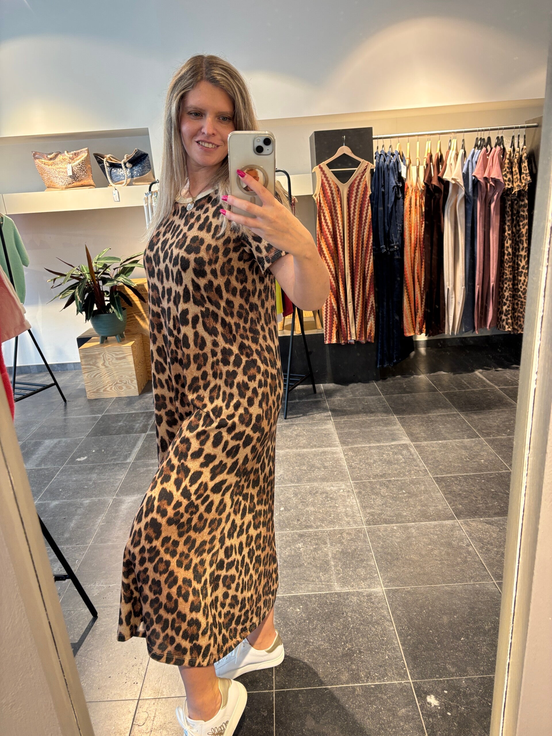 Jurk leopard met glans afwerking
