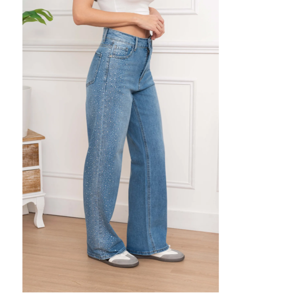 De subtiele strassdetails vangen het licht bij elke stap en geven deze jeans een opvallende, luxe touch zonder in te boeten op draagbaarheid.