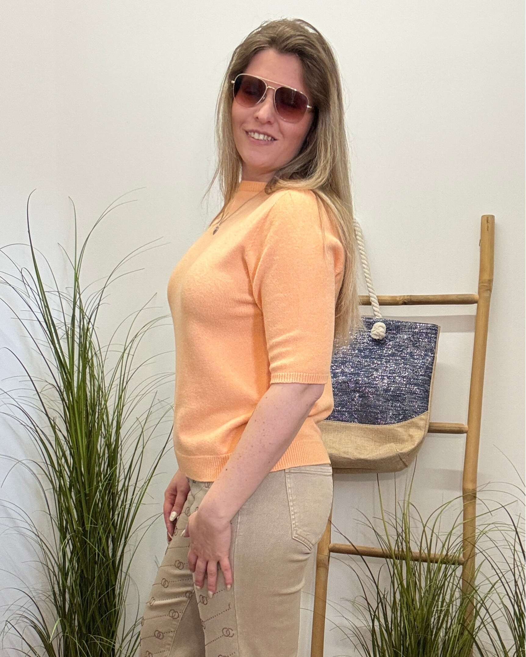 De zachte oranjetint brengt instant energie in je outfit en laat je stralen, of je nu casual gaat of net dat tikkeltje gekleder.
