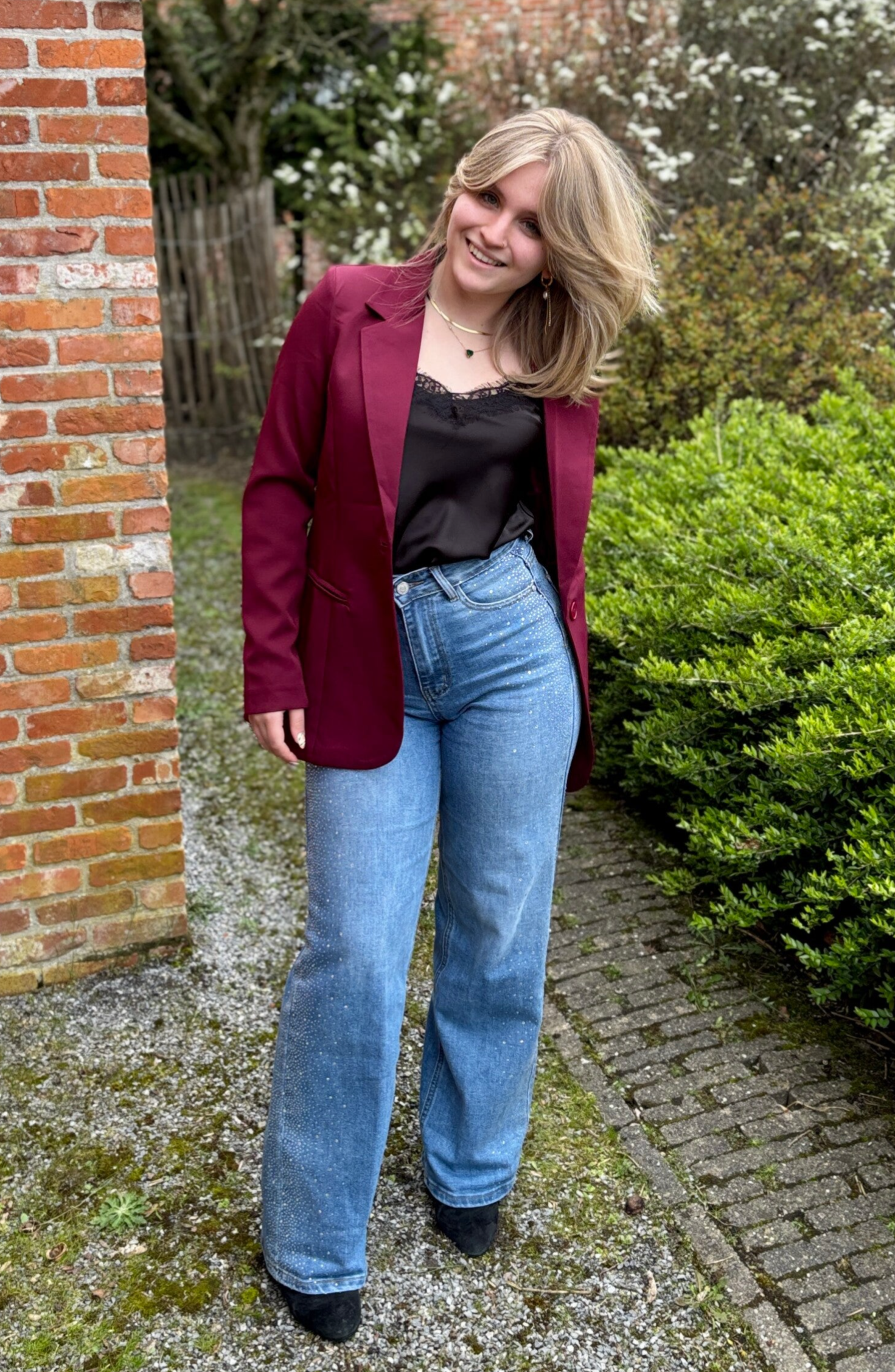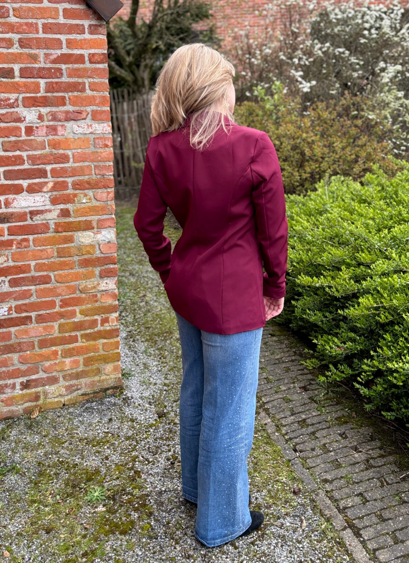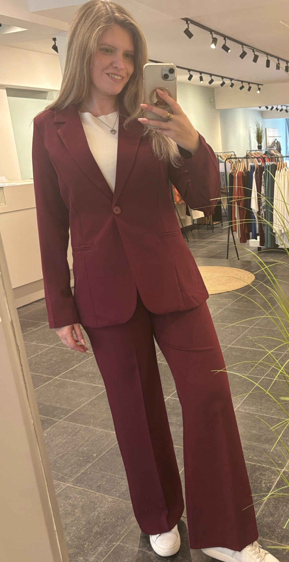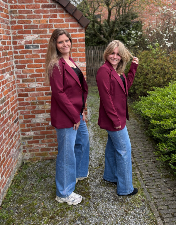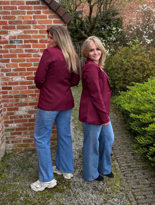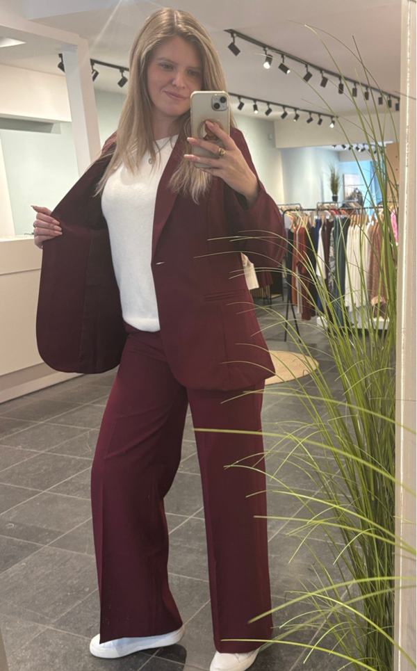 De rijke bordeaux tint geeft een krachtige, verfijnde uitstraling, terwijl de perfecte snit zorgt voor een flatterende pasvorm en uitzonderlijk comfort — de hele dag door.