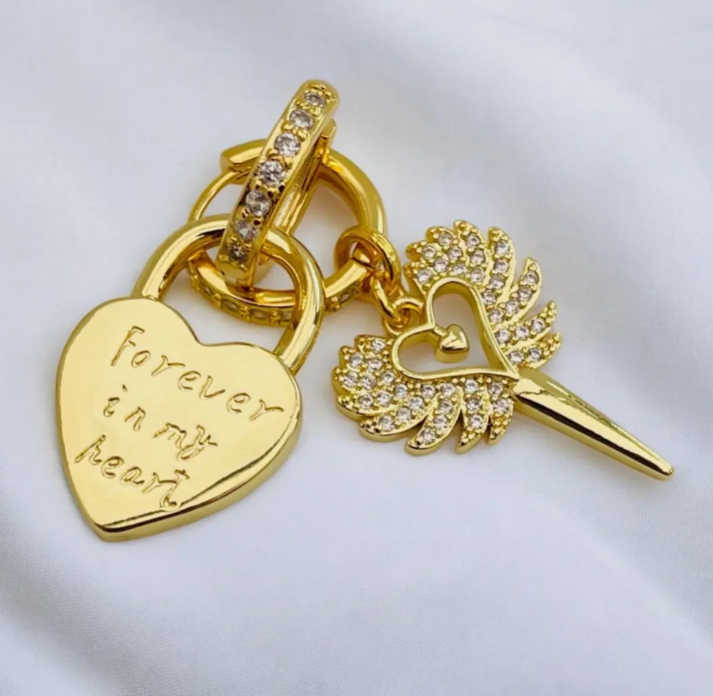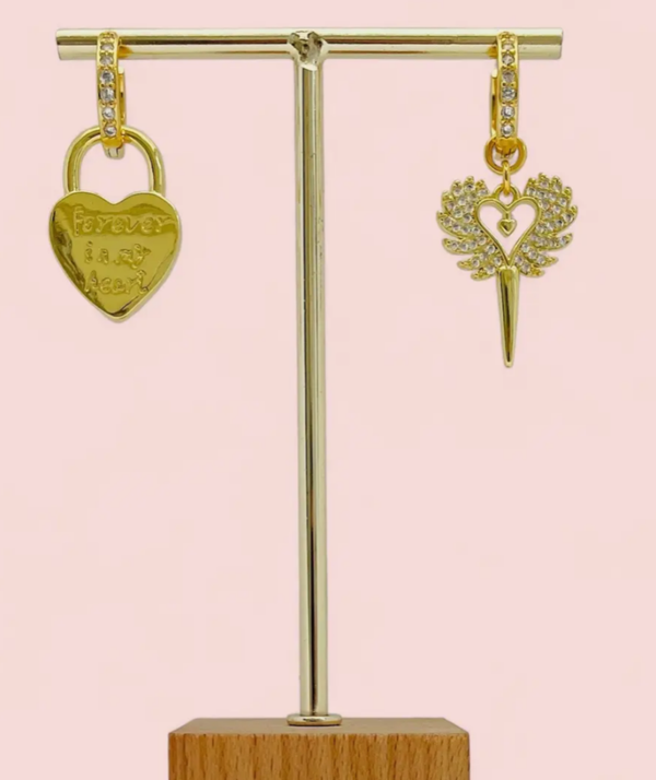 De ene oorbel is afgewerkt met een hart en de tekst “Forever in my heart” – een blijvend symbool van liefde, herinnering en verbondenheid.